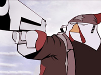 } - 本作的前身是一款网页Flash游戏,本身也只是一款2D过关游戏,在重制到PSN上时做了3D化处理,其本身对应3D眼镜(没有眼镜,无法体验这一视觉效果,残念啊)。作为一款PSN独占游戏,竟然还拥有白金奖杯,确实很少见。而且画面用的卡通渲染很到位,不乏美式幽默。创作团队是新加坡华人团体,对于系统预设了简体中文的玩家,一进游戏就能看见简体中文,会有些许诧异~当初没想到会有简体。虽说是3D游侠资源站,但是实际看起来更偏向2D,因为制作的时候用的是45度视角,我们能看到的是建模的前方和部分侧面,场景变化不大,很多丛林、地道的关卡,第3章是空战,很另类的空战,对操作要求也比较高,这些画面容易让人感觉回到从前了。2D卷轴过关王道的时代。 音乐很酷,非常带感!和游戏风格十分契合。在XBM画面的时候停留在游戏图标上就能听见主题曲,游戏讲述的是一群鸡(鸟?)的故事……有了拟人化效果,从一些简单的事情上反映出一些事实,一个小时玩到了第7章,本身难度不高,解谜要素有是有但是都很简单,加上系统单调,通关也就是3、4小时的事吧。配音方面都是大叔,剧本不乏美式幽默。